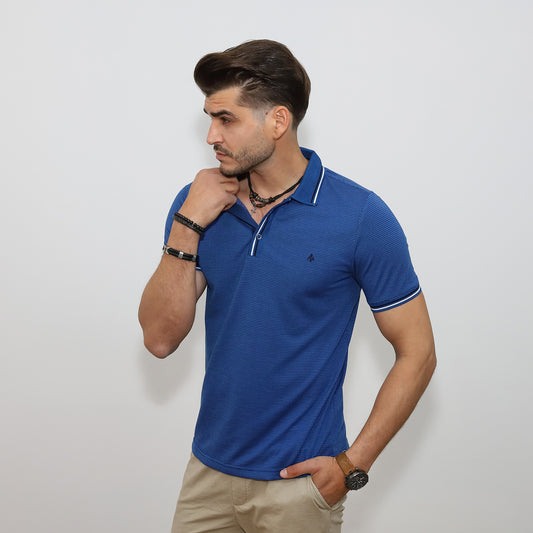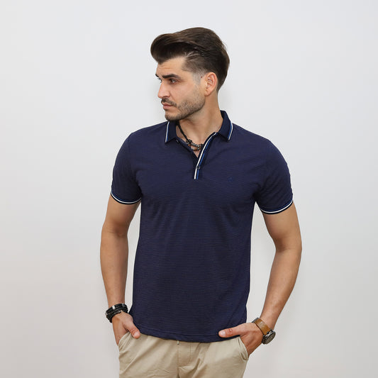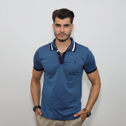 Kontraszt galléros póló - tengerészkék