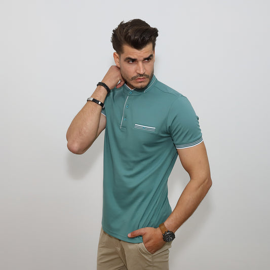 Állógalléros pamut póló - Eukaliptusz zöld