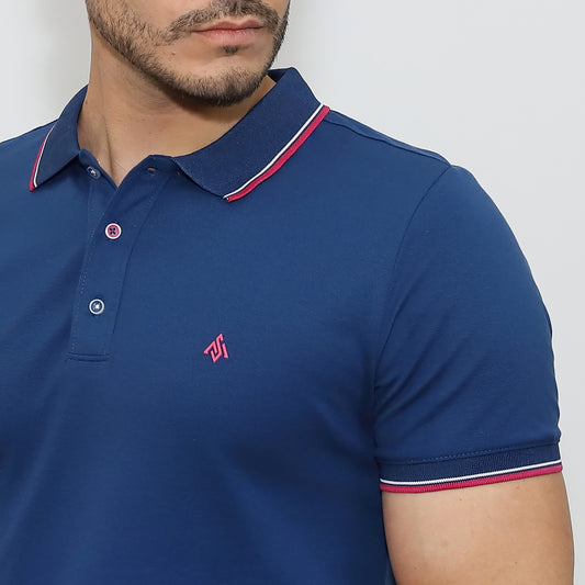 Színes galléros póló - sötétkék