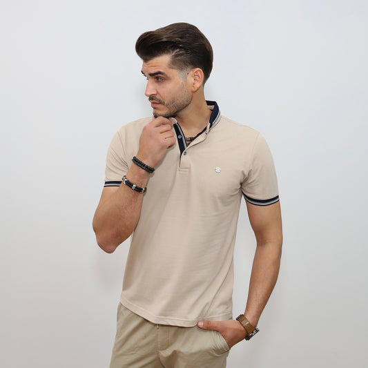 Kontraszt galléros póló - bézs