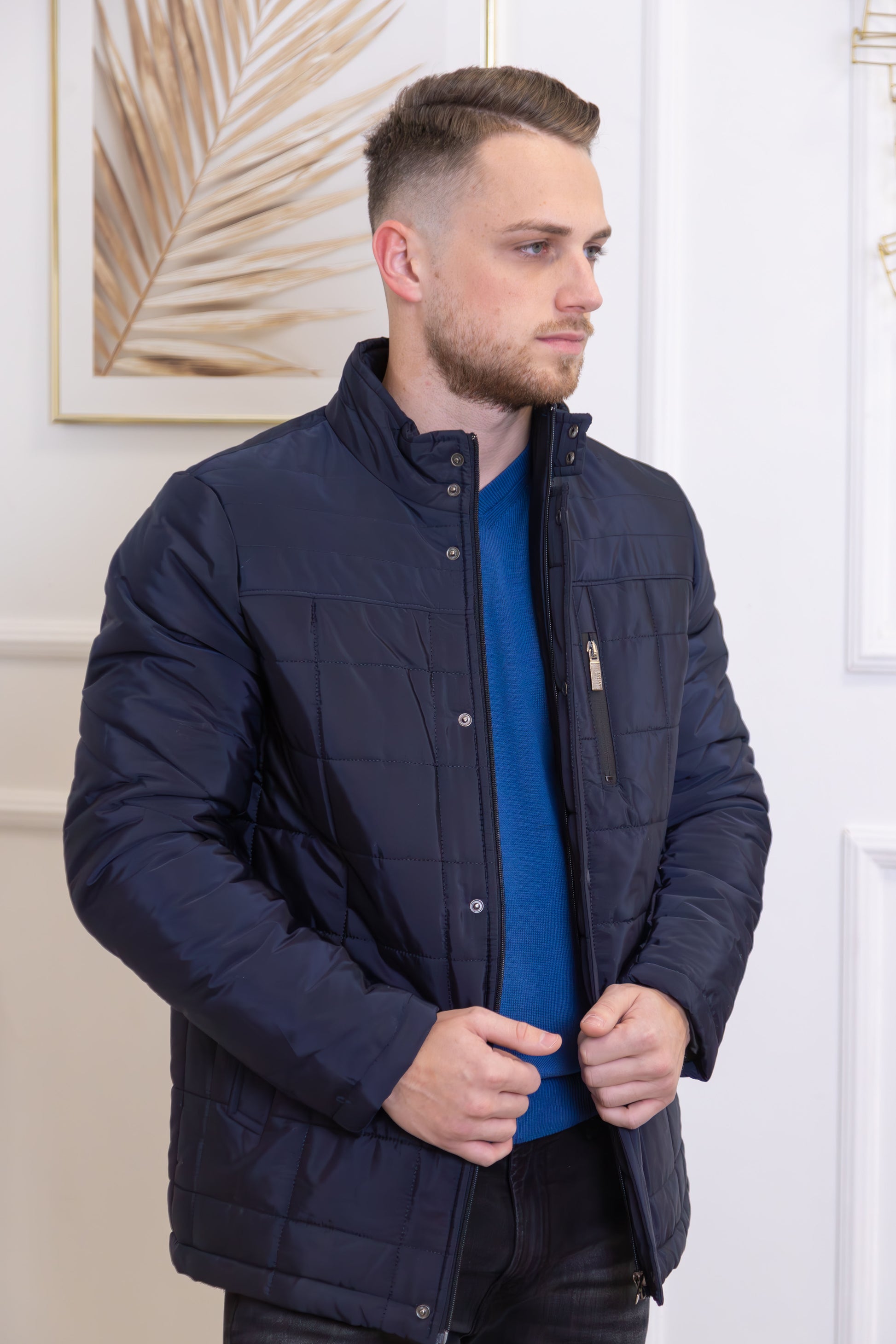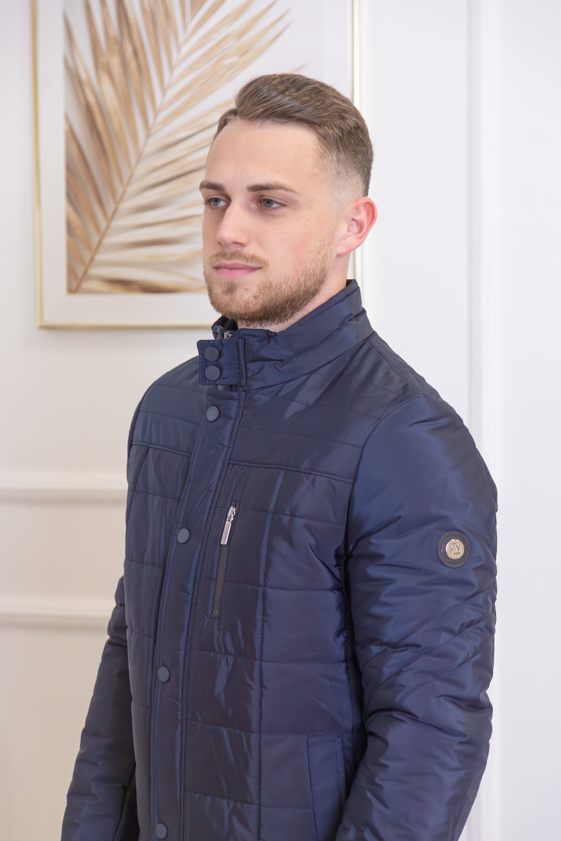 Klasszikus stílus, időtálló elegancia. Steppelt minta, modern és elegáns. Cipzáras és patentos záródás. Mellkasi cipzáras zseb, közepesen magas gallér. Mély sötétkék szín. A szabása jól illeszkedik a testhez, de elég tágas a réteges öltözködéshez is.