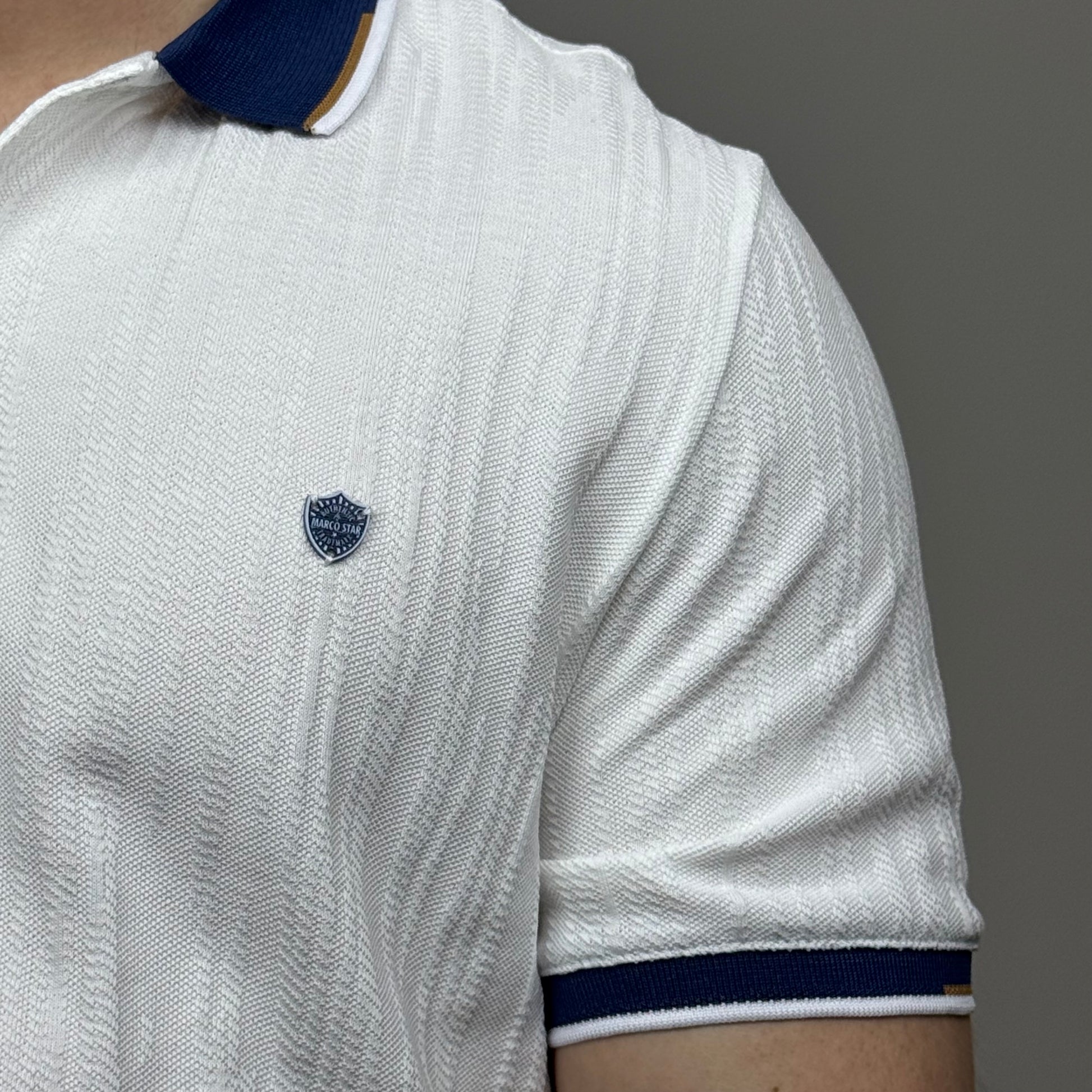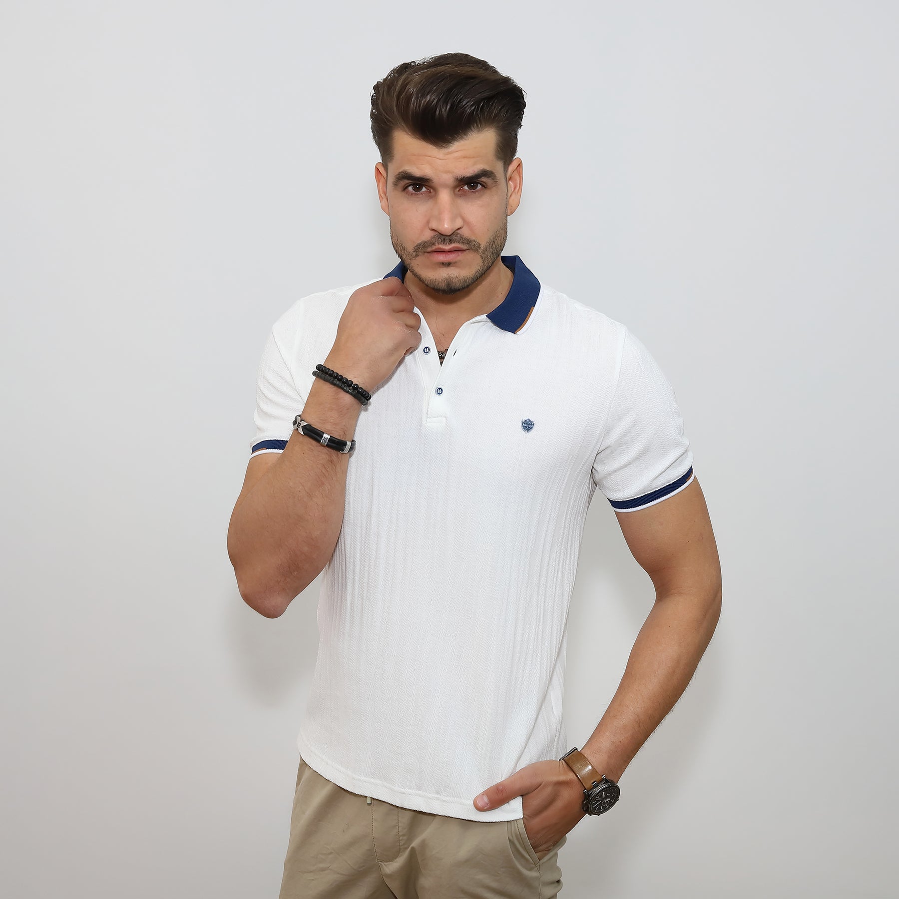 Kifinomult design egyezik a galléron és ujjrésznél, háromgombos nyakrész, mellrészén fémhatású MCS logóval díszítve, texturált minta, kényelmes viselet, légáteresztő anyag.