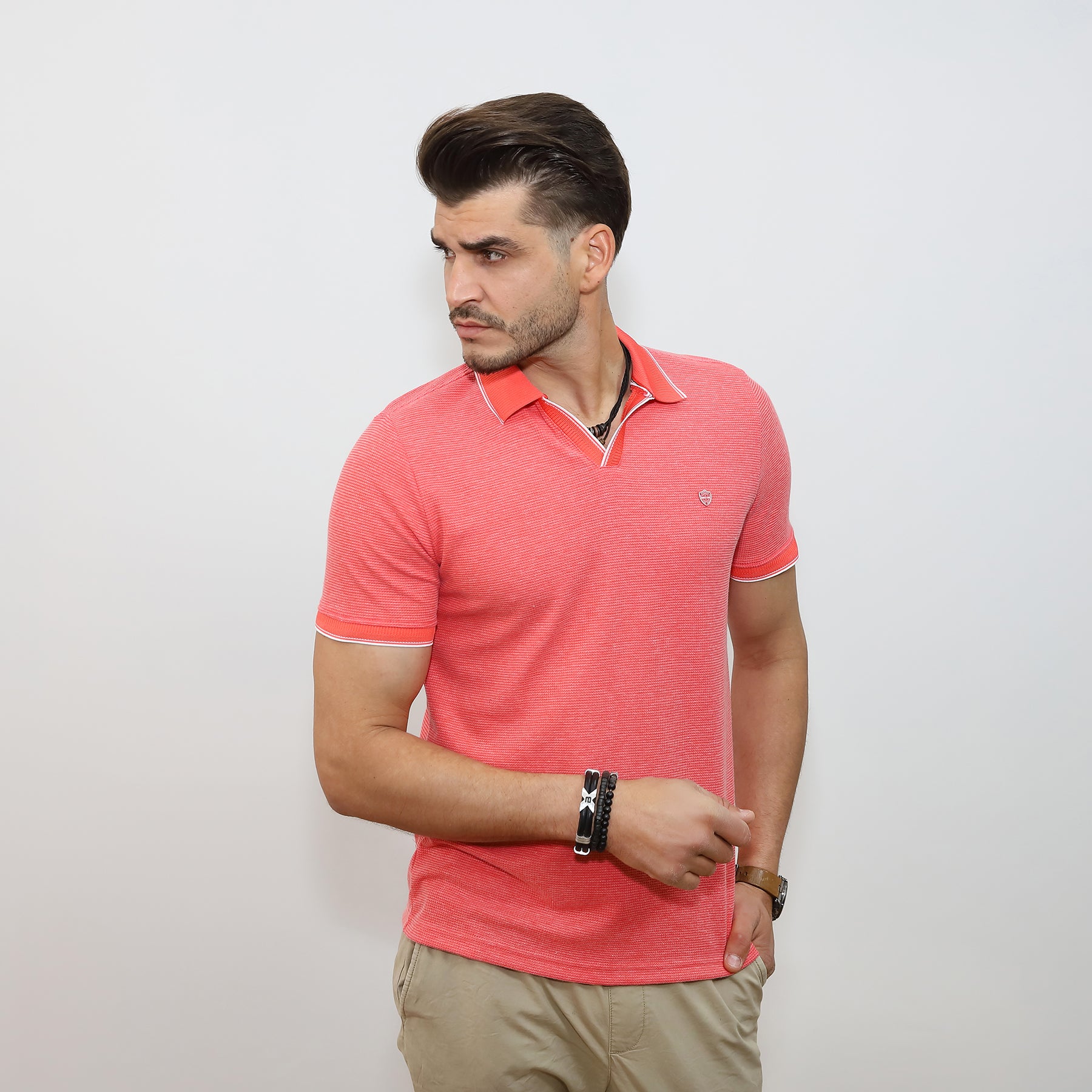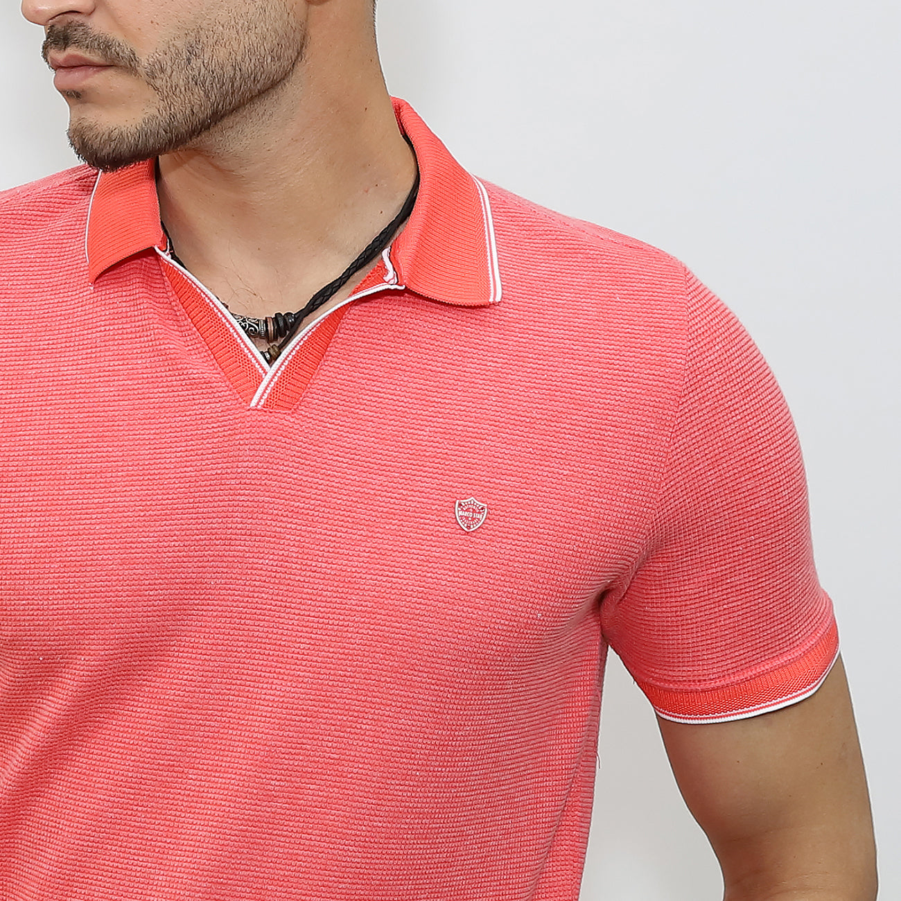 Kifinomult bordázott gombnélküli gallér és ujjrész, mellrészen fémhatású MCS logóval díszítve, texturált minta, kényelmes viselet.