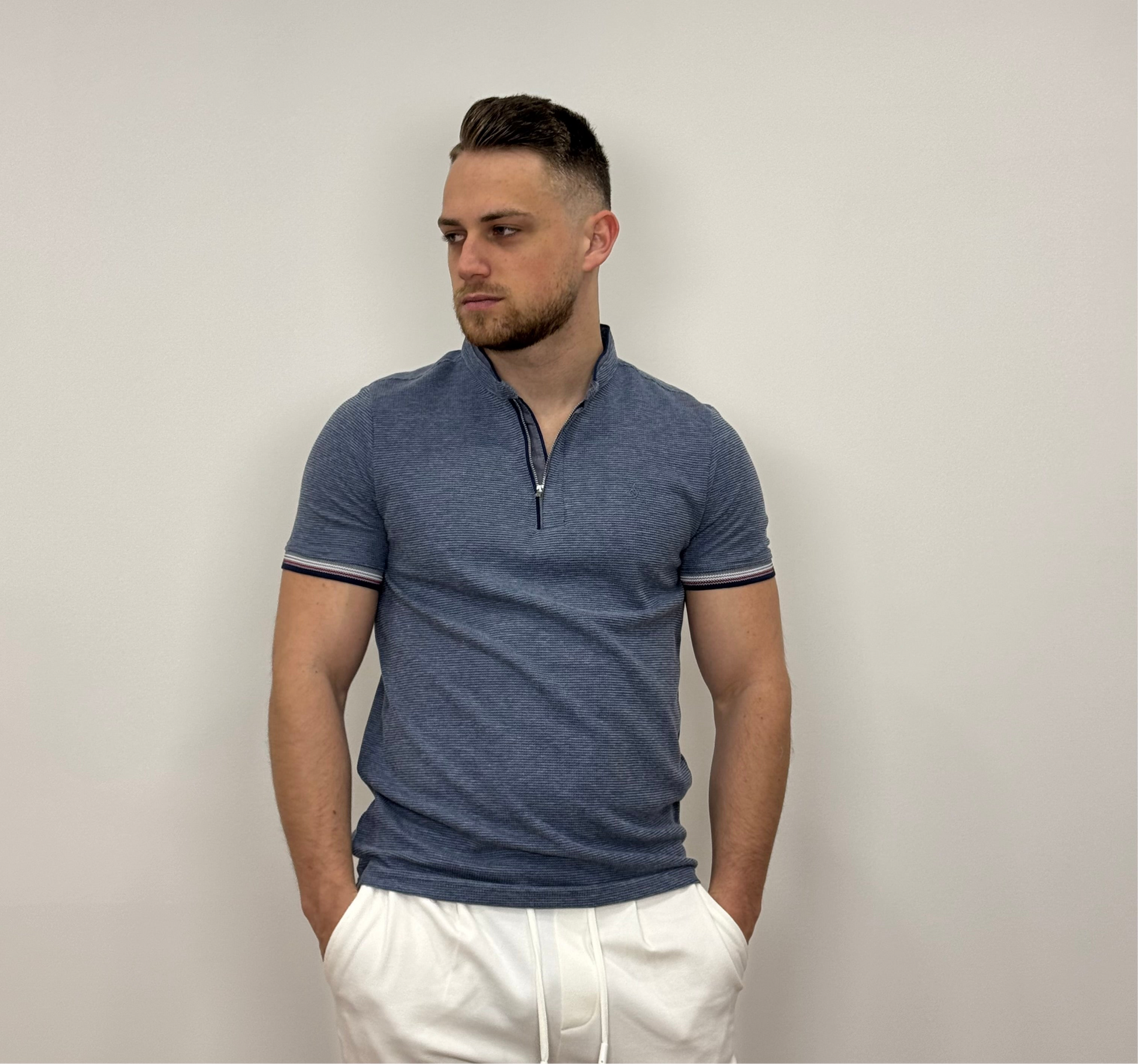 Állógalléros póló - Farmerkék