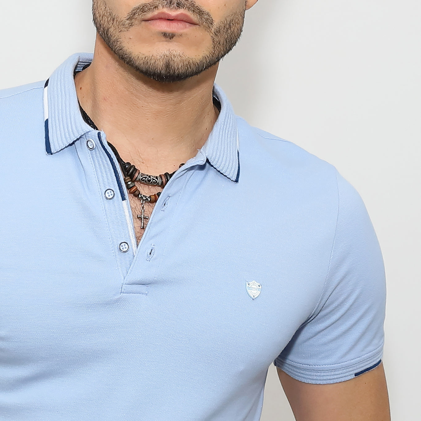 Bordázott gallér, kifinomult design egyezik a galléron és a karon, mellrésznél MCS logóval díszítve, háromgombos nyakrész, légáteresztő anyag, kényelmes viselet.