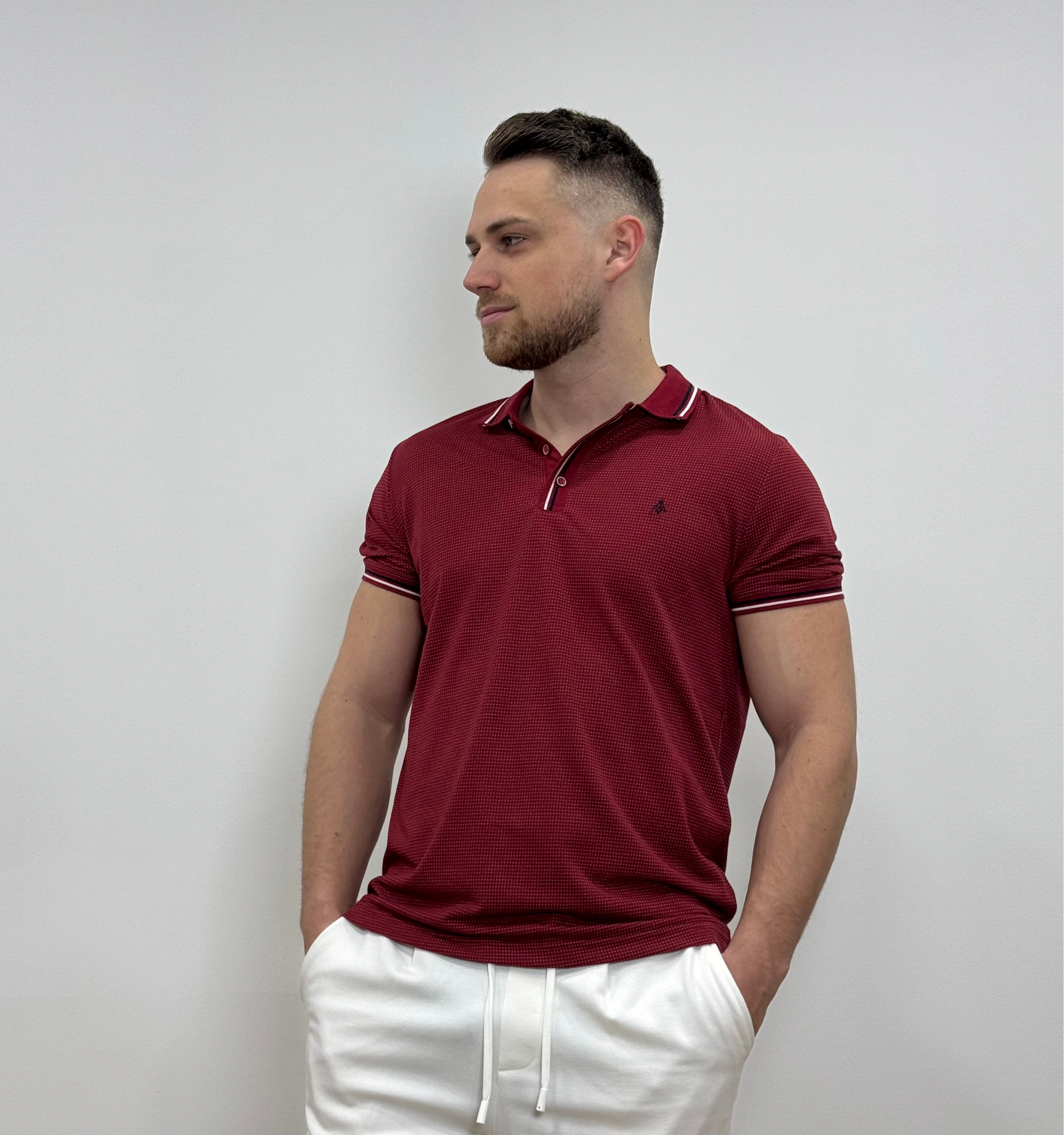 Kontraszt galléros póló - Bordó